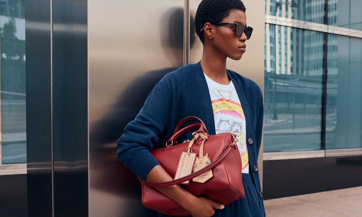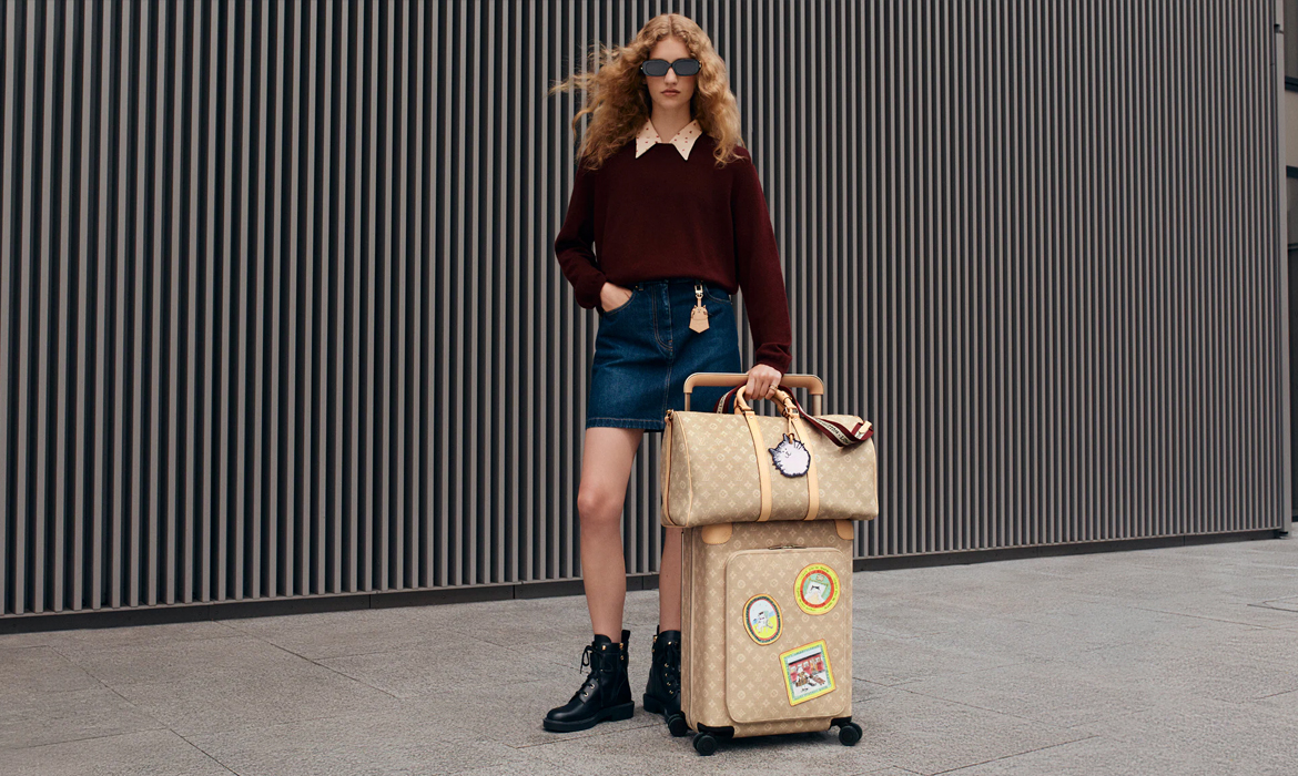 After the smash-hit 2019 Catogram collection, Louis Vuitton invited Grace back for another whimsical adventure in the world of high fashion. The Louis Vuitton Travels With Grace Coddington collection is the next chapter in this journey, and this time, it’s not just her cats that are the stars. Joining them are Nicolas Ghesquière’s own beloved dogs, Achille and Léon, creating a four-legged, cross-country cast that embarks on a story of their own. Together, they traverse the world—from the streets of Sydney and London landmarks to the jungles of the Amazon, the Great Wall of China, and even outer space. Every creature's paw prints are immortalized in a collection of travel stickers, reminiscent of those iconic, history-laden marks found on Louis Vuitton’s famed luggage.